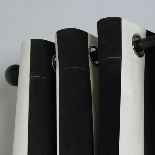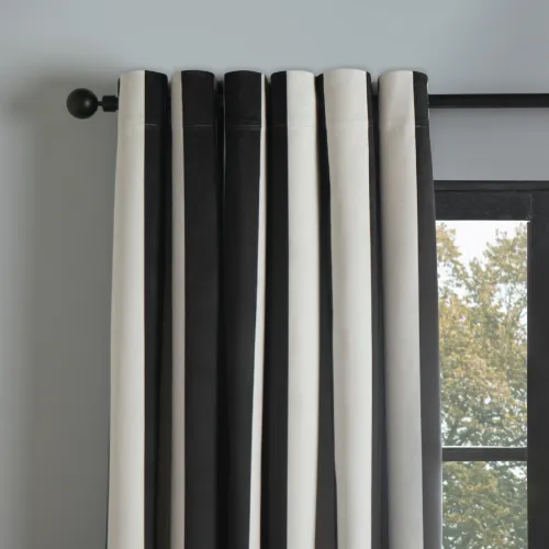 The OHS Stripe Print Eyelet Ultra Blackout Curtains in Monochrome combine modern stripe design with full blackout functionality. Easy-to-hang eyelets ensure smooth operation along the curtain rod, while the fabric blocks light and enhances privacy. Perfect for bedrooms or living spaces, these curtains add bold, contemporary elegance to any interior.