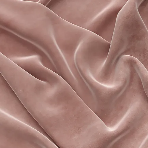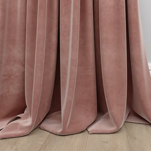 Soft blush-toned velvet features a luxurious powder-matte finish with thermal blackout lining.